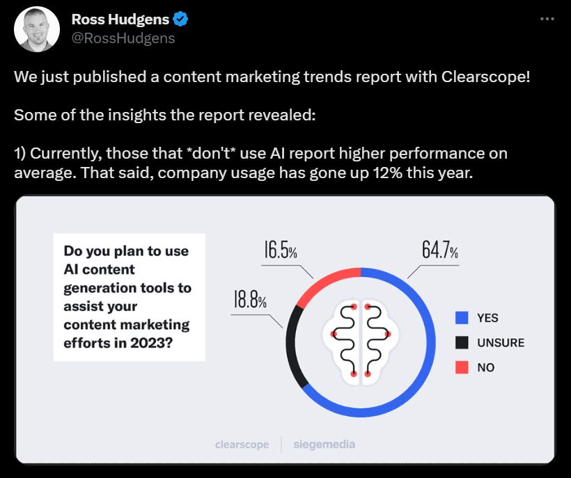 💻 A content marketing trends report with Clearscope - There are a few very interesting insights that Ross Hudgens and Clearscope shared with us.